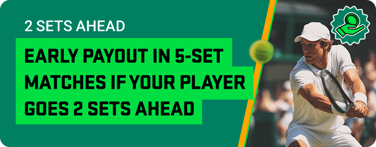 • If your player takes a 2-set lead, your bet will be paid out early in cash – within 10 minutes!