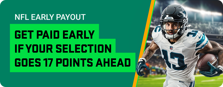 Get an early payout on your single and multi bets when you bet pre-match on the NFL Result market (Win1 or Win2).