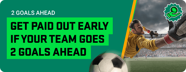Get paid out early if your team goes 2 goals ahead, even if they go on to win, lose or draw.
