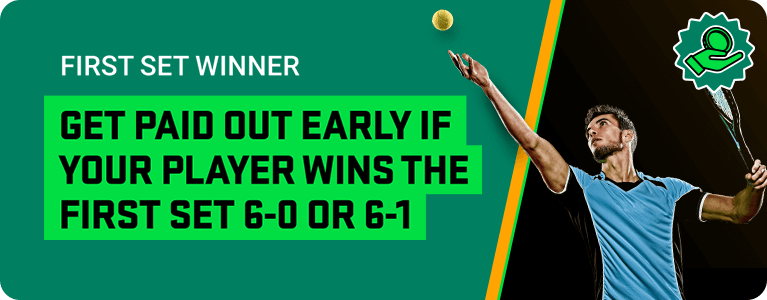 Get paid out early if your player wins the first set 6-0 or 6-1, even if they go on to win, lose or draw.